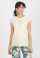 AURELIA M – Top Premaman in Crepè Plissettato con Scollo a Barchetta e Cinturino (Sabbia)