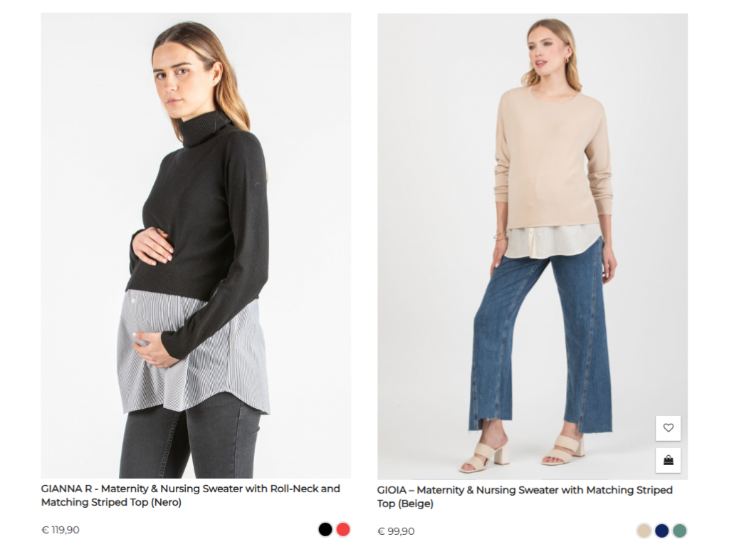 At Attesa Maternity, we offer a wide selection of garments,